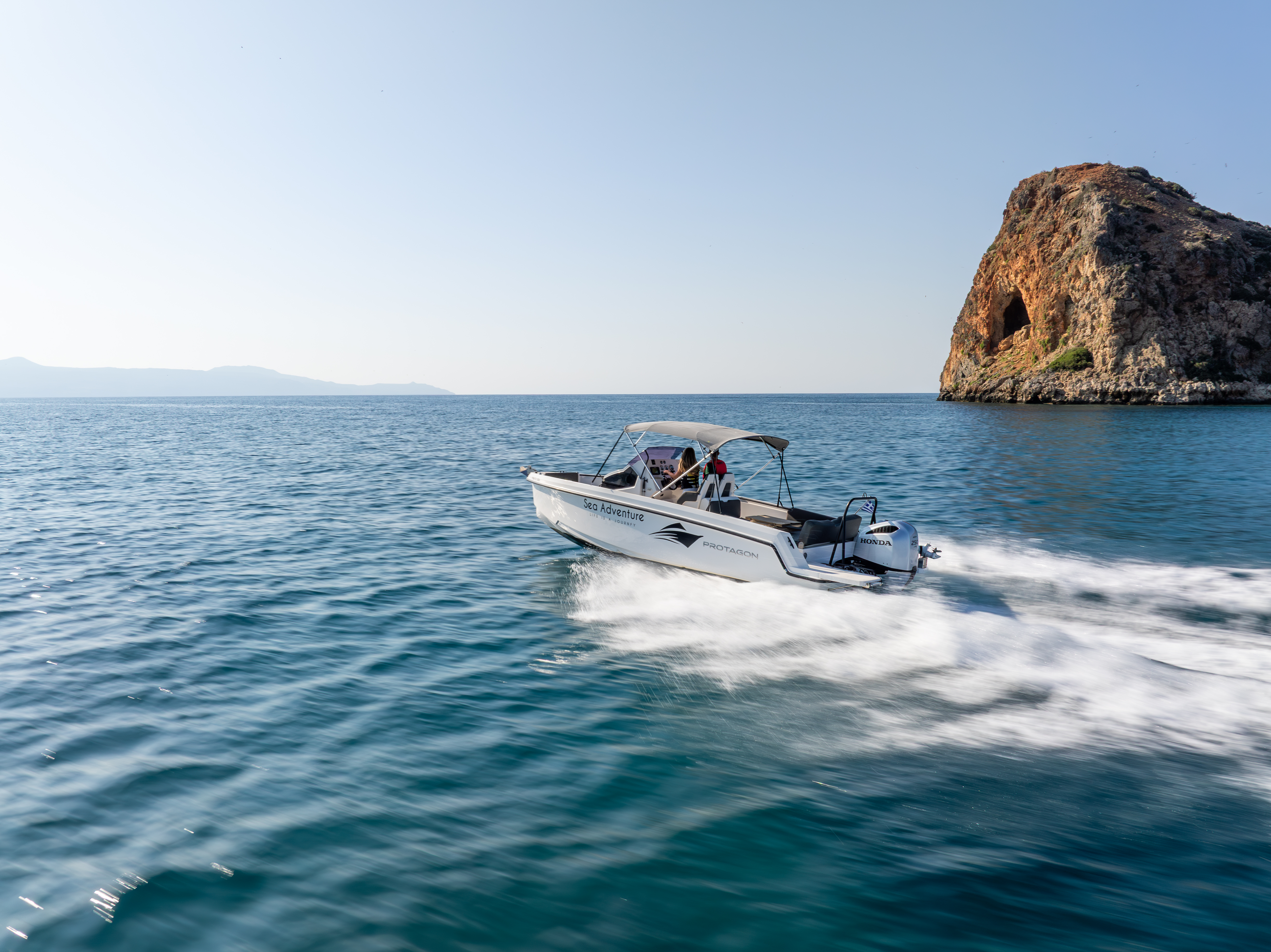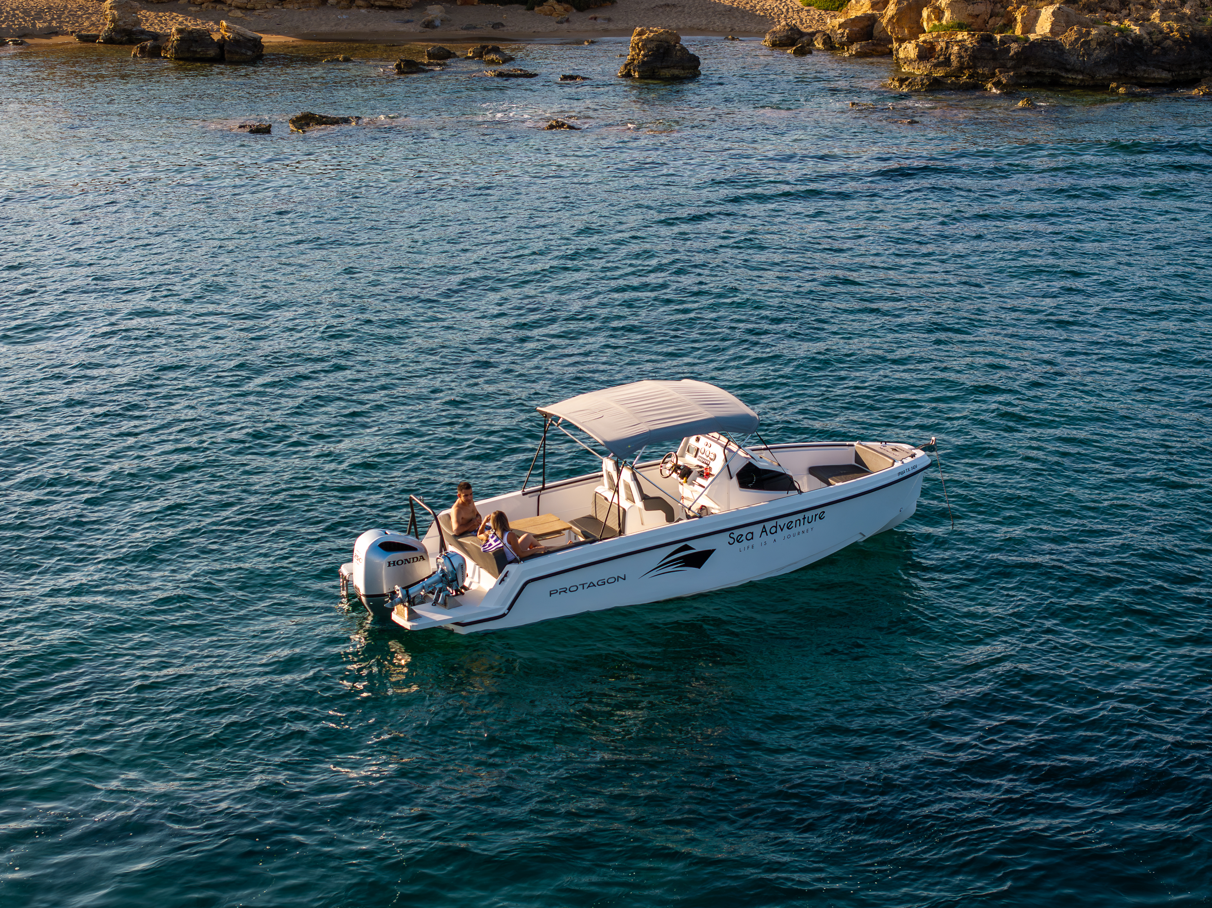 Les bateaux de Protagon sont dotés de coques en V profond avec deux steps et une étrave qui épouse les vagues, garantissant une navigation fluide et stable même dans une mer agitée et à grande vitesse.