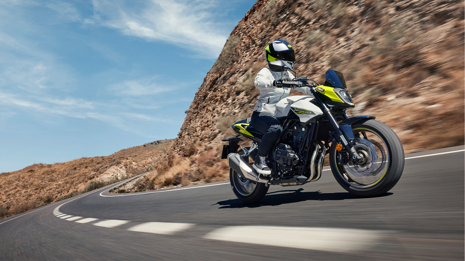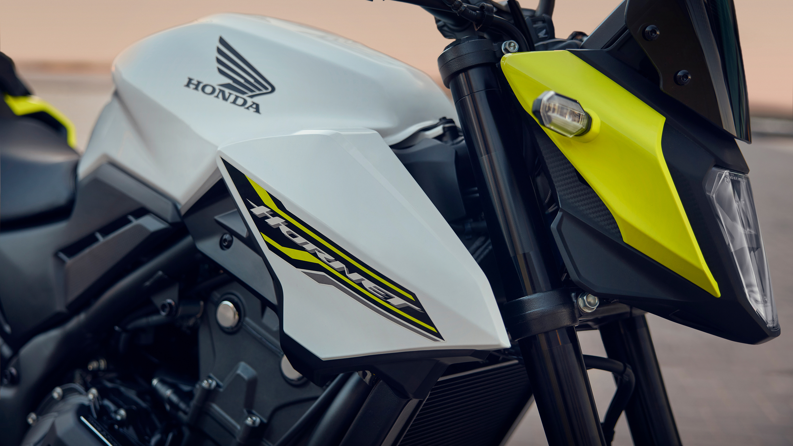 Compacte et ramassée sur l'avant, la Hornet impose de nouveaux codes esthétiques, ceux d'un roadster taillé pour marquer son temps. Le large guidon vous assure le contrôle nécessaire pour vous faufiler dans les petits espaces ou enchaîner les virages serrés en toute confiance. Et vous serez vu aussi : visible de jour, puissant de nuit, le phare perce l’obscurité et vous permet de prendre les virages en toute clarté, quelle que soit l’heure.