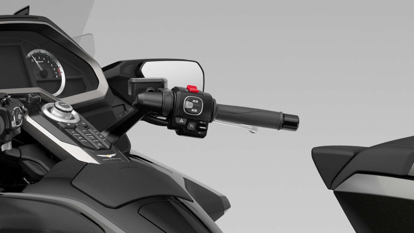 Une virée à deux se doit d’être une invitation à la découverte synonyme de plaisir partagé. Comptant sur une maniabilité dynamique et une réactivité du moteur adaptées à toute sorte de conducteur, le passager peut prendre place dans un cocon luxueux et plus spacieux que jamais, et profiter de performances révolutionnaires. Il peut également ouvrir facilement chaque valise pour accéder à son contenu tout en restant assis. Il y a aussi un interrupteur audio accessoire (situé sur la valise droite) pour le contrôle du volume de l’autoradio. Une prise USB dans la valise gauche permet de charger les smartphones. Pour plus de commodité, en particulier en compagnie d’un passager, la Gold Wing propose deux modes de marche (avant et arrière), l’idéal pour les manœuvres de stationnement.